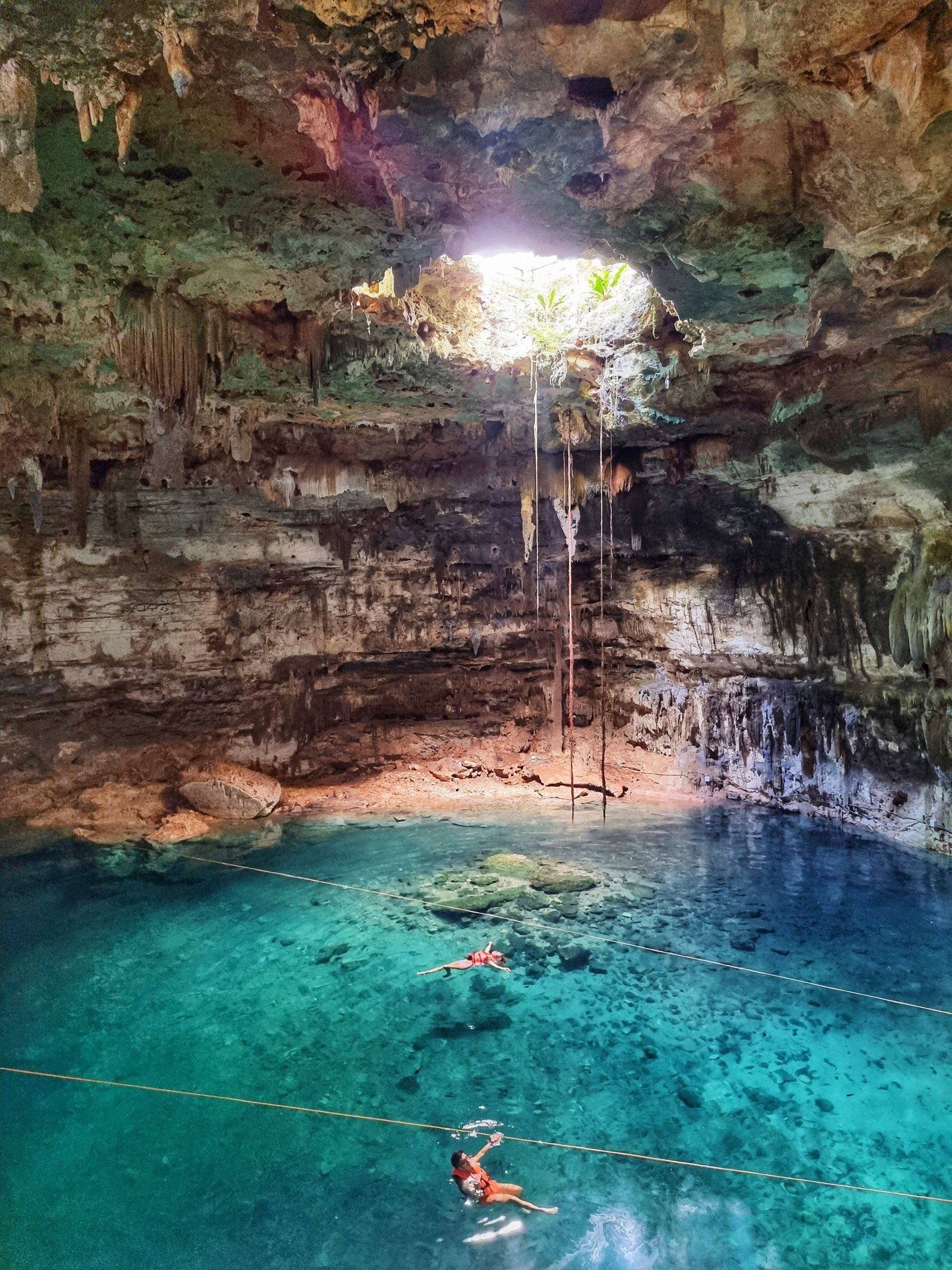 Nous partirons ensuite à la découverte de nos premiers cenote. La péninsule du Yucatan en possèderait plus de 10000 alors il a fallut faire un choix. Il faut savoir que les cenotes aux alentours de Valladolid sont très touristiques, je vous recommande donc de faire les plus connus dès l'ouverture pour pouvoir profiter de ces lieux magiques comme il se doit. Notre choix c'est d'abord porté sur le cenote Oxman, situé à 10 minutes de la ville, nous y étions à 10h pour l'ouverture et nous y étions seuls au monde (pour 10 minutes seulement ahah). Ce lieu est de toute beauté.