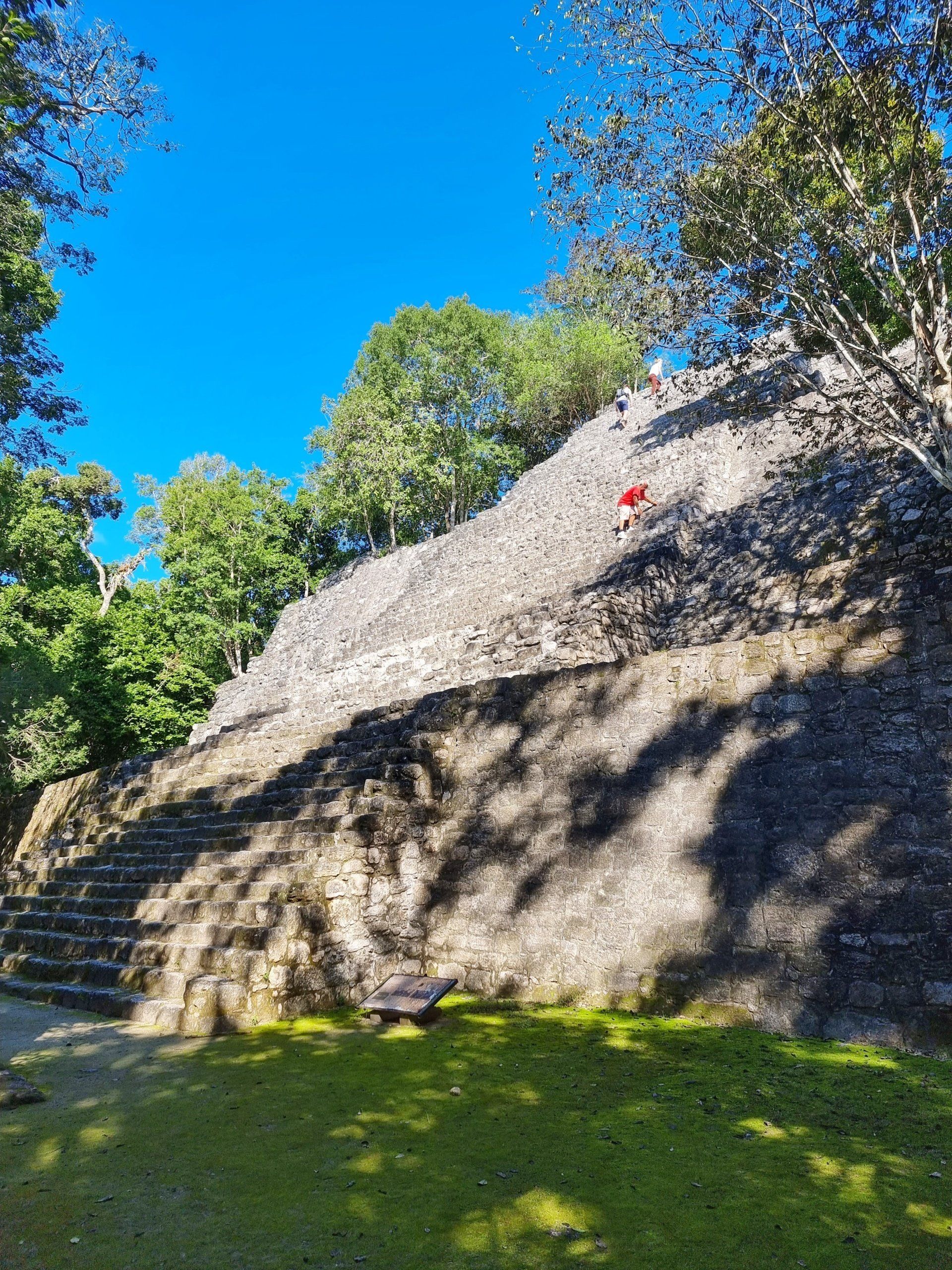 Le site de Calakmul fut découvert en 1930 seulement, ce qui fait de lui un temple encore très préservé. Ce dernier est d'ailleurs immense, en vous y baladant pour pourrez apercevoir une multitude d'oiseau ainsi que des singes hurleurs. En 2021 il était encore possible de monter en haut des pyramides, cela pourrait changer c'est pour cela que je préfère le préciser. Je vous recommande donc de monter sur la petite puis sur la grande, les deux points de vues offrent une vue imprenable sur la jungle environnante, on se sent réellement comme des aventuriers.