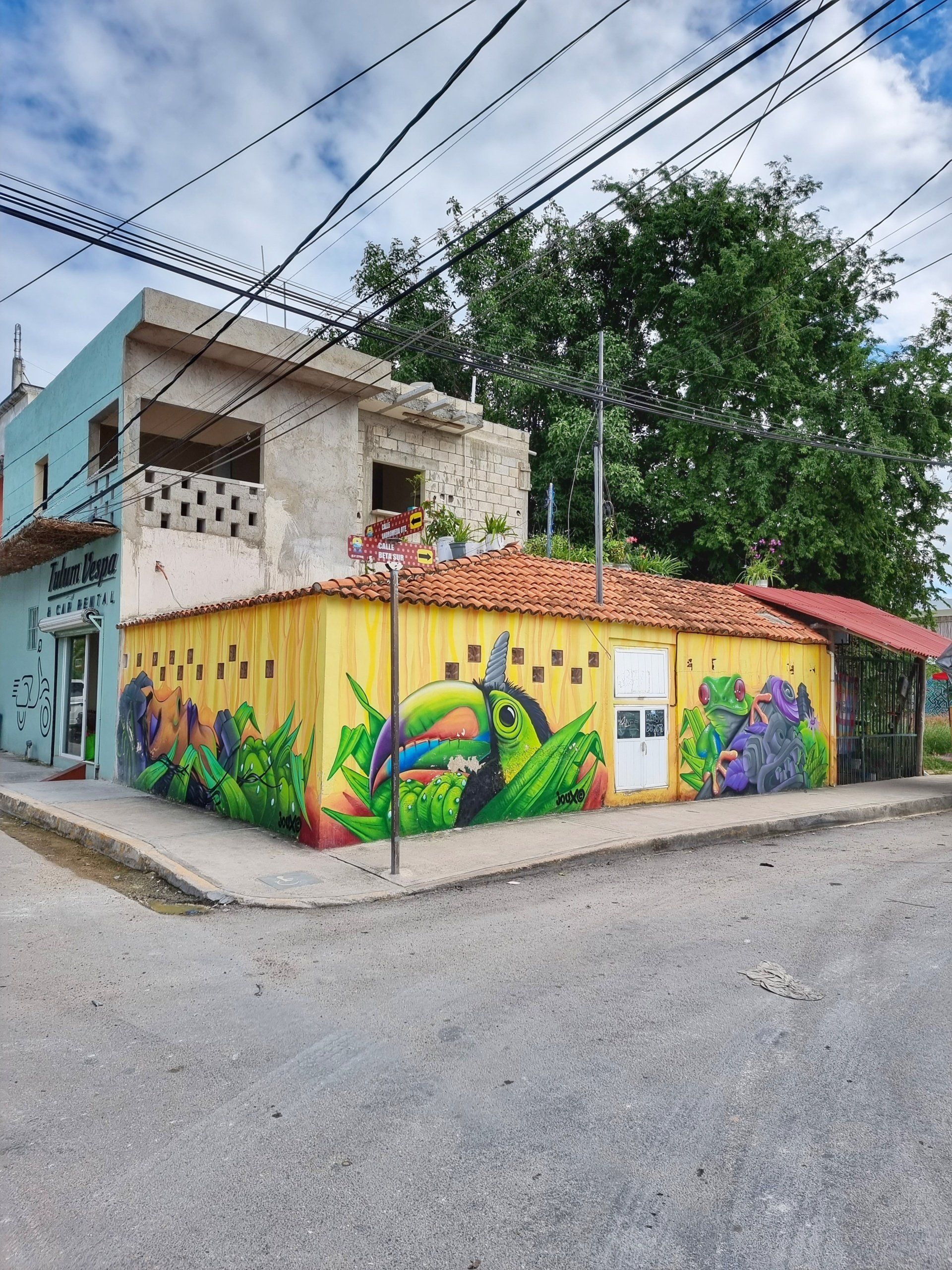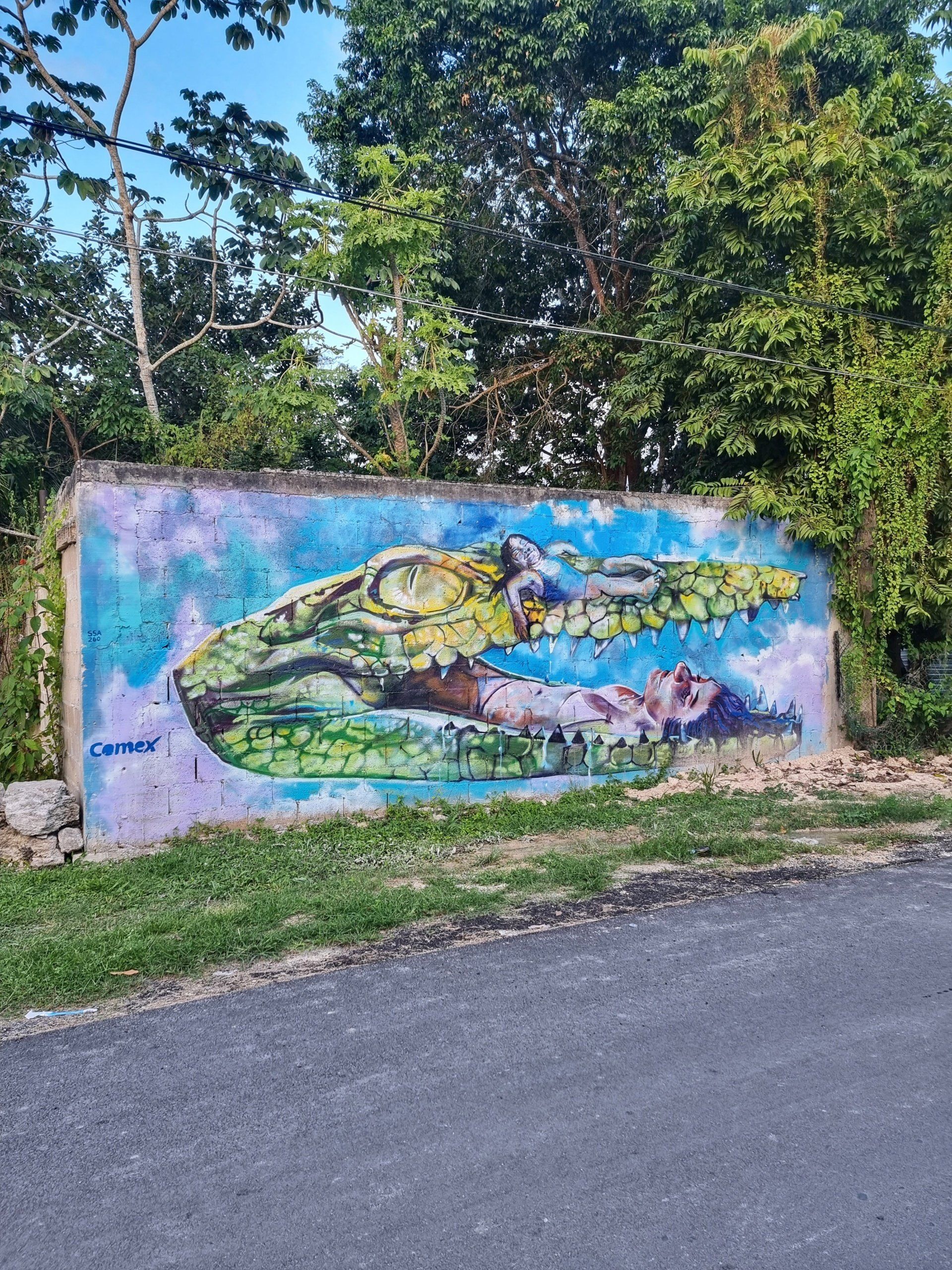 Nous finirons cette journée par une balade dans le vieux Tulum, et mis à part son joli street art nous n'avons pas du tout aimé l'ambiance, et pour la première fois depuis le début de notre voyage nous nous sentions absolument pas en sécurité. Il faut savoir qu'en 2021 il y eu plusieurs fusillades à Tulum, durant la dernière deux touristes sont malheureusement décédés, ça ne met effectivement pas en confiance.