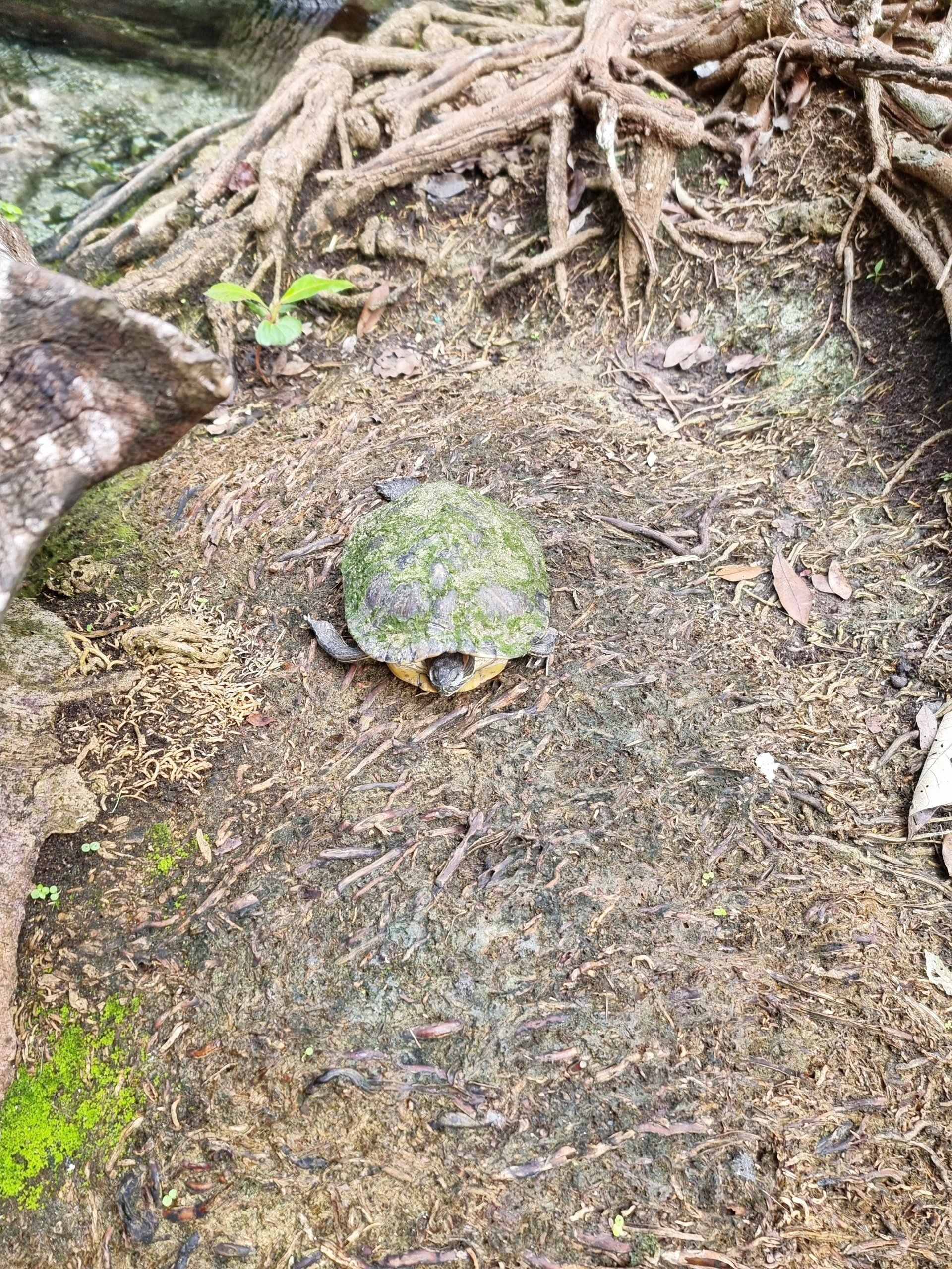 Ce cenote est connu car il regorge de tortues... Oui mais voilà ces tortues ont été importées ici par l'homme, elles n'ont donc, de base, rien à faire ici. Le problème est que ce cenote est extrêmement touristique, et que cela n'est pas bon pour les tortues, nous avons donc trouvé sur le bas coté un cadavre de tortue, un salarié du cenote nous explique que cette dernière est morte à cause des touristes qui viennent avec de la crème solaire sur eux. Pour nous la faute n'est pas aux touristes, mais aux propriétaires de ce cenote qui appâtent les touristes ici uniquement grâce aux tortues, car en soit le cenote n'est pas incroyable. Je vous le répètes mais les tortues n'ont rien à faire dans un bain de touristes.